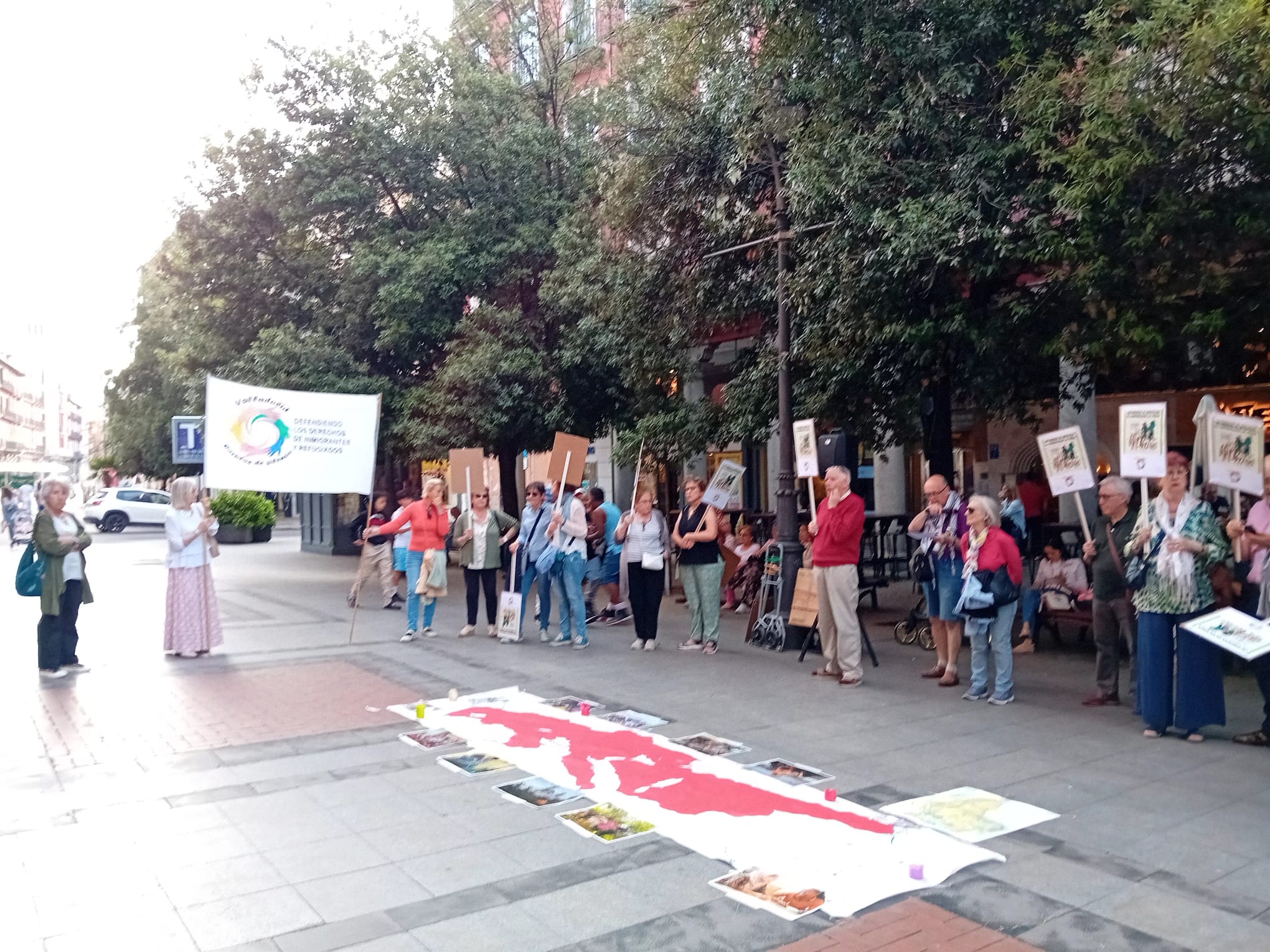 Volvemos a unir nuestra denuncia a la vulneración de derechos que sufren las personas migrantes. Tal vez somos pocos, pero estamos aquí porque creemos en la necesidad de una sociedad de acogida y hospitalidad, y lo hacemos visible, trayendo a este círculo rostros, historias y sensibilidad.