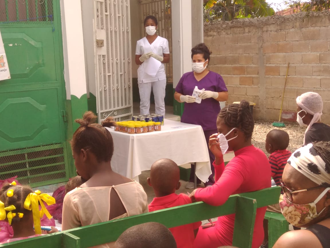 Con este proyecto de nutrición el centro apoya la infancia y a las mujeres embarazadas a domicilio, sobre todo a los niños que no tienen padre ni madre y se crían solos. También hay mujeres embarazadas que han sido abandonadas por su pareja o posible padre. En este caso necesitan apoyo moral, aunque no tengan problemas para dar a luz. Es una situación que ocurre a menudo en Haití. Dado que el médico responsable del centro está especializado en medicina familiar y pediatría, realiza un acompañamiento con las familias, tanto en cuestión sanitaria, como social y económica.